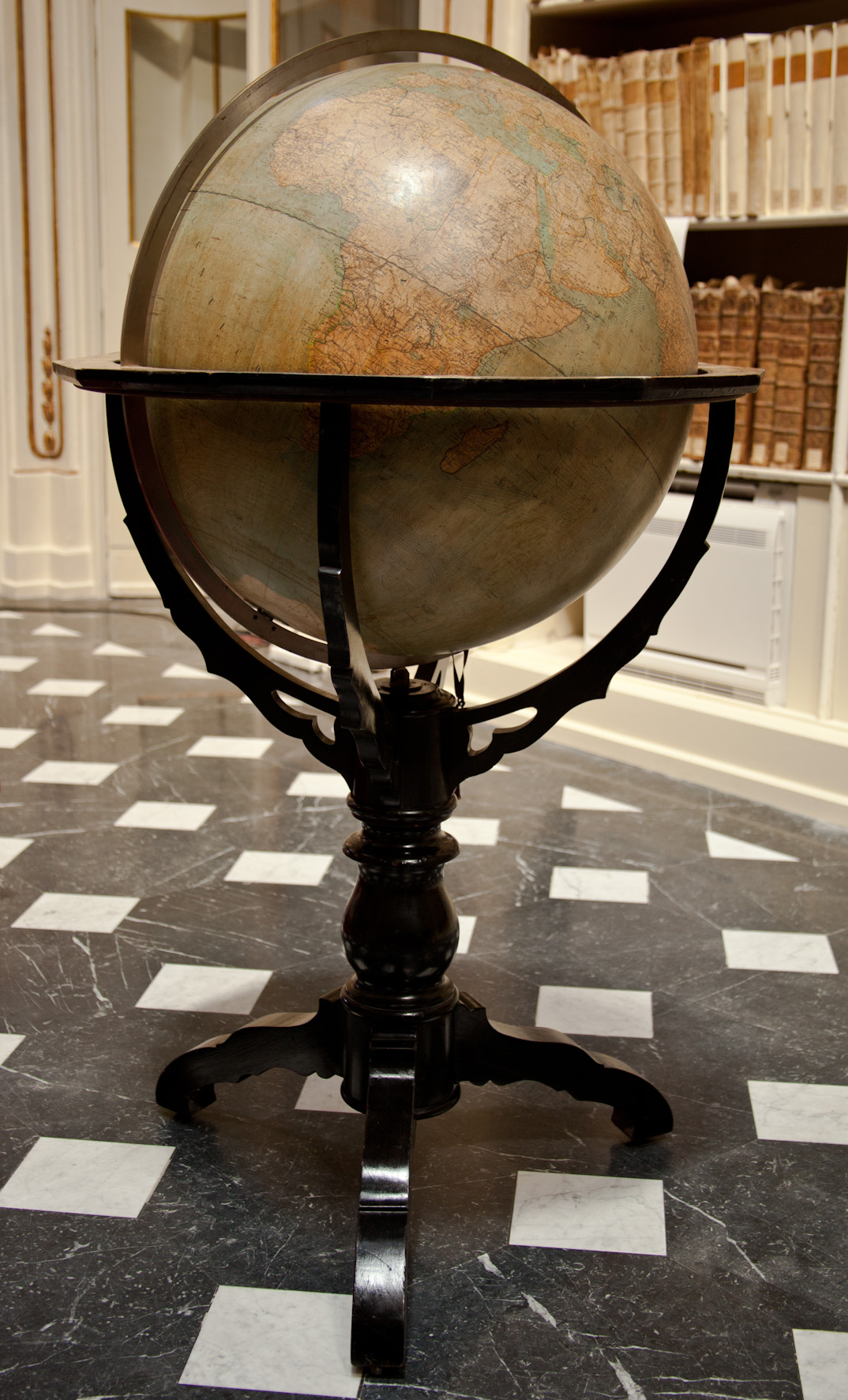 The 18th-Century Hall, originally called the Grand Hall, was designed by the Piedmontese military architect Giacinto Marciotti. About twenty meters long, eight meters wide, and seven and a half meters high, it features large windows overlooking the port. The double set of ivory-lacquered bookshelves with golden friezes occupies the entire right and left walls of the room, while a balcony, accessible by a steep staircase hidden behind a small door to the right of the entrance, extends around all four sides of the hall. The bookshelves were made by the Cagliari craftsman Angelo Cardu, initially painted dark red and later repainted in a color similar to the current one, which gave the room more brightness. The ceiling originally had a false ceiling decorated with the arms of the Savoy dynasty. The original floor was made of slate.