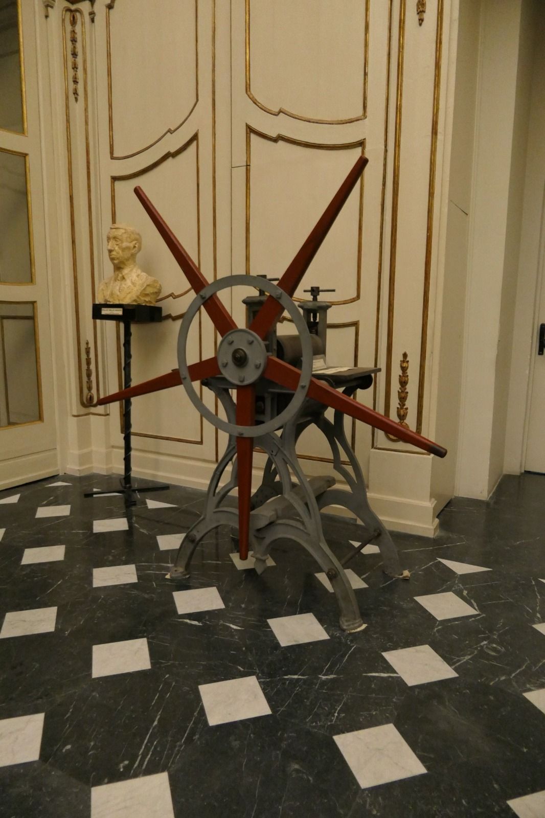 The room houses some sculptures: in front of the windows, there is an 18th-century bust of the historian Giuseppe Manno, made by the sculptor from Alghero, Moccia; to the right of the entrance, a bust of the painter and engraver Felice Melis Marini, created in the 20th century by Anna Cabras Brundo. The room is also enriched by a late 19th-century globe by the Turin geographer Cora and a printing press for engravings that belonged to the Cagliari artist Anna Marongiu Pernis, who tragically passed away at a young age in 1941.